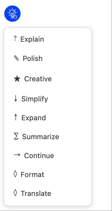 AI-powered text assistant with explain, polish, and creative features. Select text and get instant AI help.